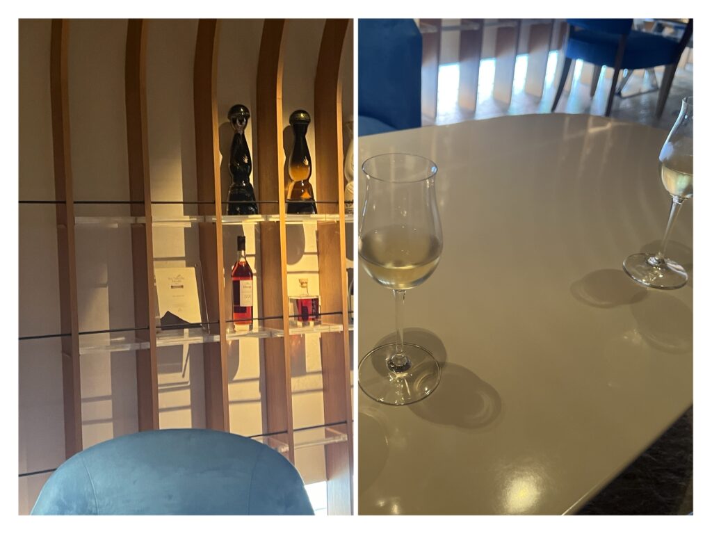 入店したらまず待合室?みたいな空間のソファでお茶をいただいた。ワイングラスに入っていてかわいー💛