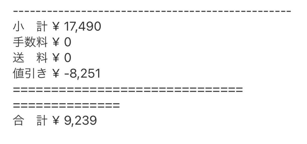 17,490円分の商品が、8,251円割り引きで、9,239円